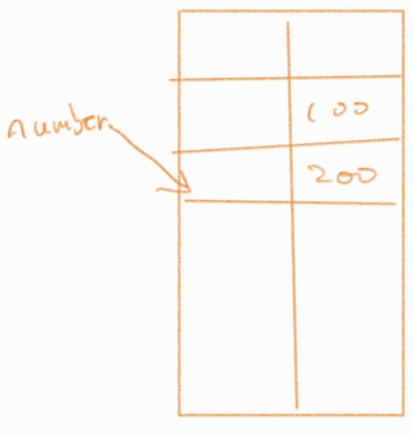 메모리의 새로운 공간에 200 이라는 값을 넣어두고,