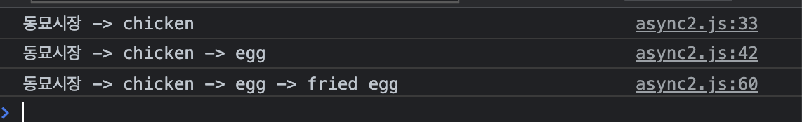 resolve('동묘시장 -> chicken -> egg -> fried egg');