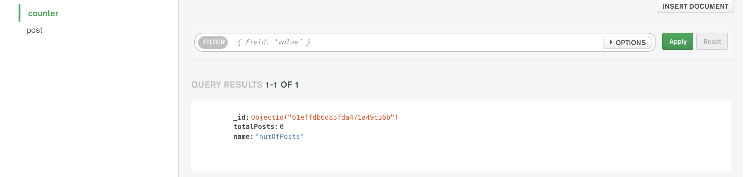 db.collection('counter') 는 계속 반복적으로 사용을 하고있는데,