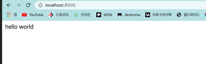 localhost:8000/ 에 접속하면, 'hello world'가 랜더링 되게끔 해서
