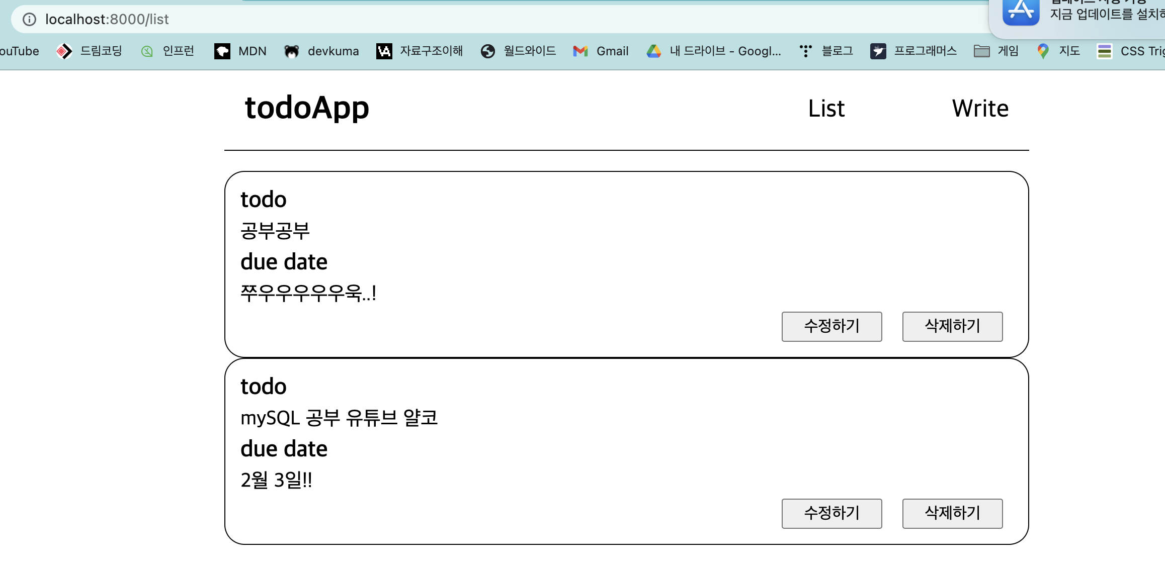 이렇게 수정된 내용을 보여주는 list 페이지로 이동한다.