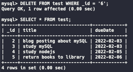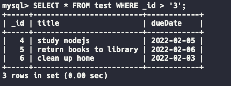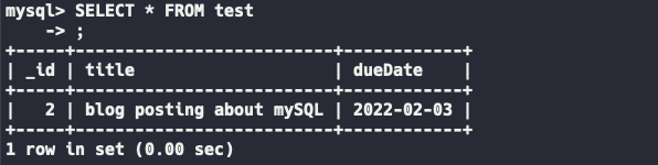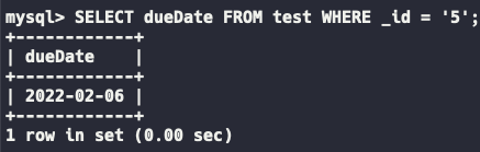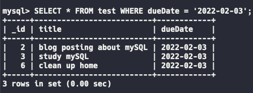 $ SELECT * FROM test WHERE dueDate = '2022-02-03';