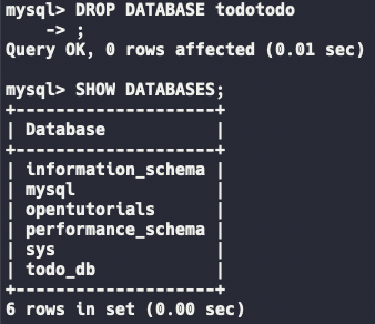 $ DROP DATABASE 지우고싶은데이터베이스이름;