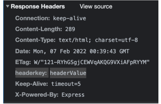 res.setHeader() method를 이용해서 response header에 새로운 텍스트를 추가함