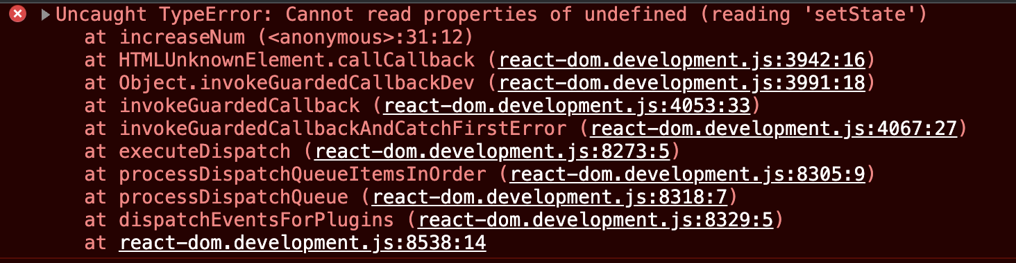 그래서 increaseNum 내부의 this.setState 는 window.setState로 동작을 하게되니