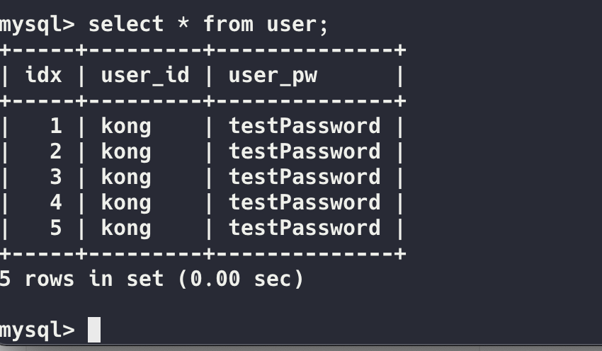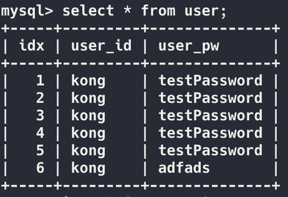 데이터가 잘 입력된 것을 확인 할 수 있다.